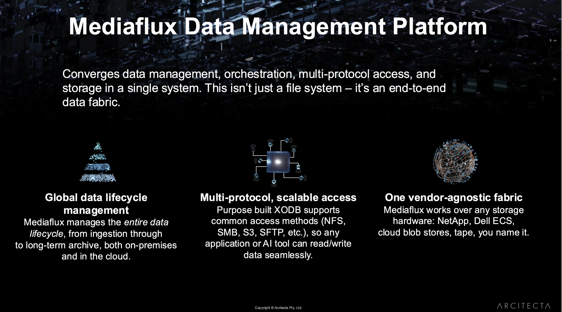 Eric Polet, Arcitecta’s Director of Product Marketing, explained that decoupling storage from compute has become one of the company’s main priorities.