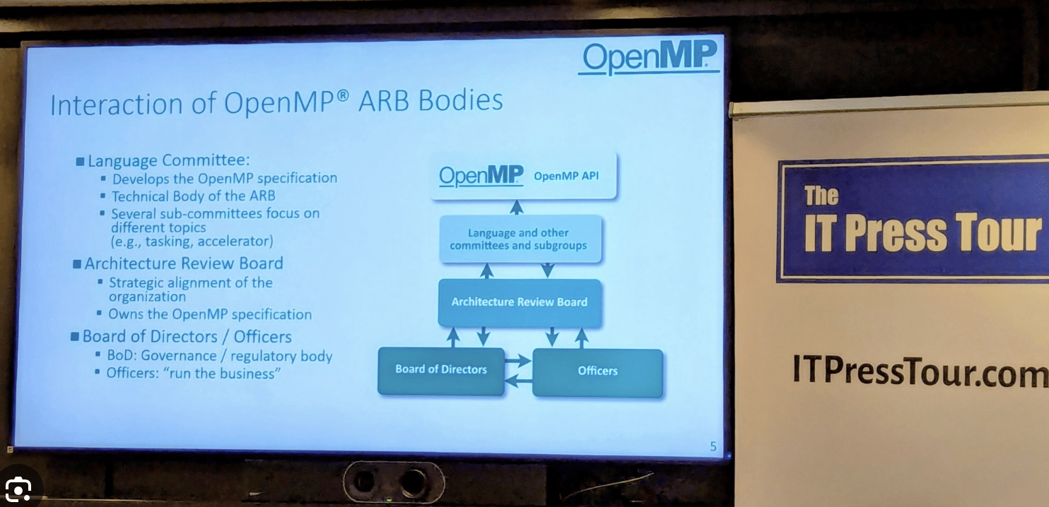 There are also geopolitical constraints. For example, U.S. export control laws can affect how standards groups collaborate internationally. Dr. Klemm acknowledged these tensions but emphasized that the focus remains on maintaining OpenMP's openness, portability, and relevance.
